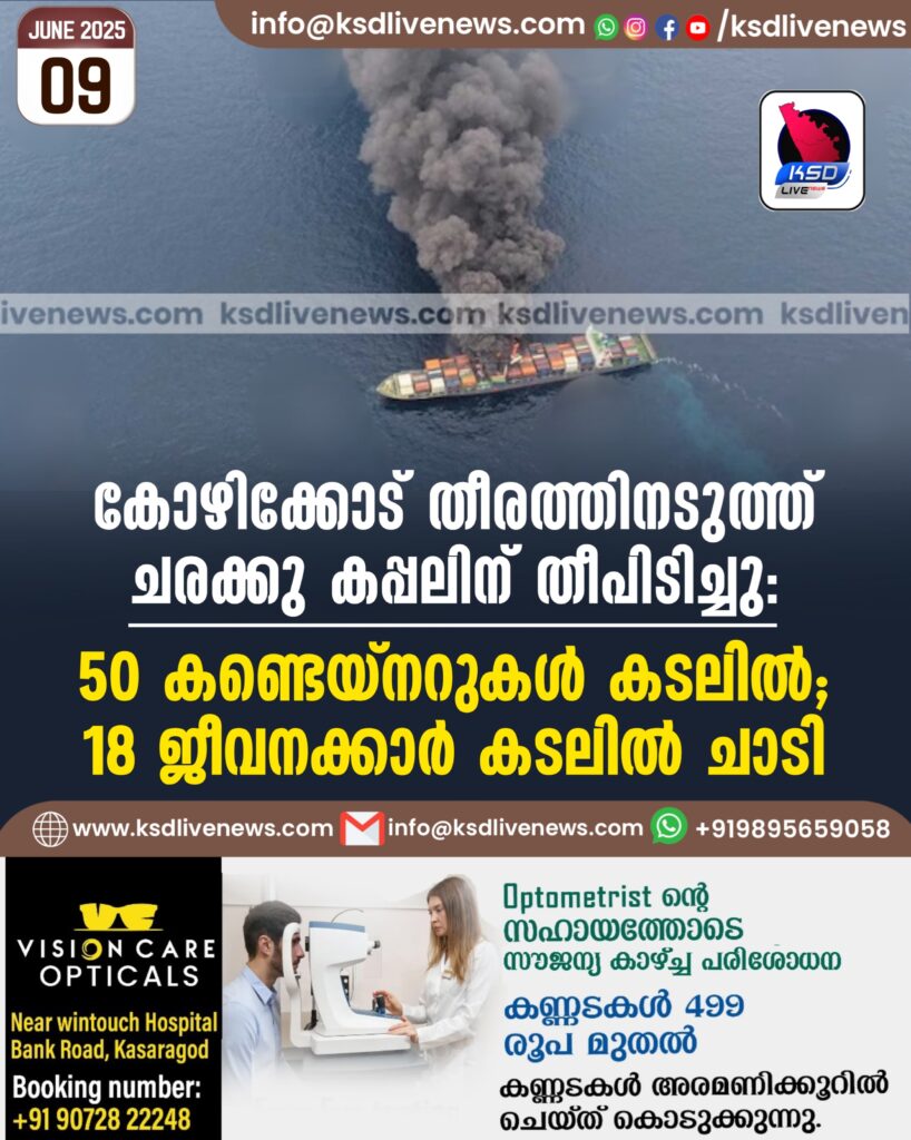 കോഴിക്കോട് തീരത്തിനടുത്ത് ചരക്കു കപ്പലിന് തീപിടിച്ചു: 50 കണ്ടെയ്നറുകൾ കടലില്; 18 ജീവനക്കാർ കടലിൽ ചാടി
