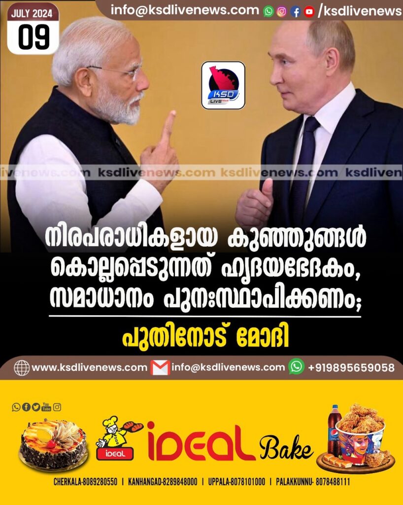 നിരപരാധികളായ കുഞ്ഞുങ്ങൾ കൊല്ലപ്പെടുന്നത് ഹൃദയഭേദകം, സമാധാനം പുനഃസ്ഥാപിക്കണം; പുതിനോട് മോദി