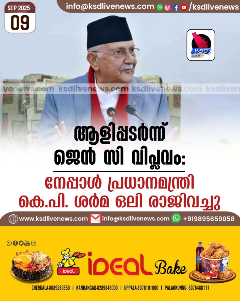 ആളിപ്പടര്ന്ന് ജെന് സി വിപ്ലവം; നേപ്പാള് പ്രധാനമന്ത്രി കെ.പി. ശര്മ ഒലി രാജിവച്ചു
