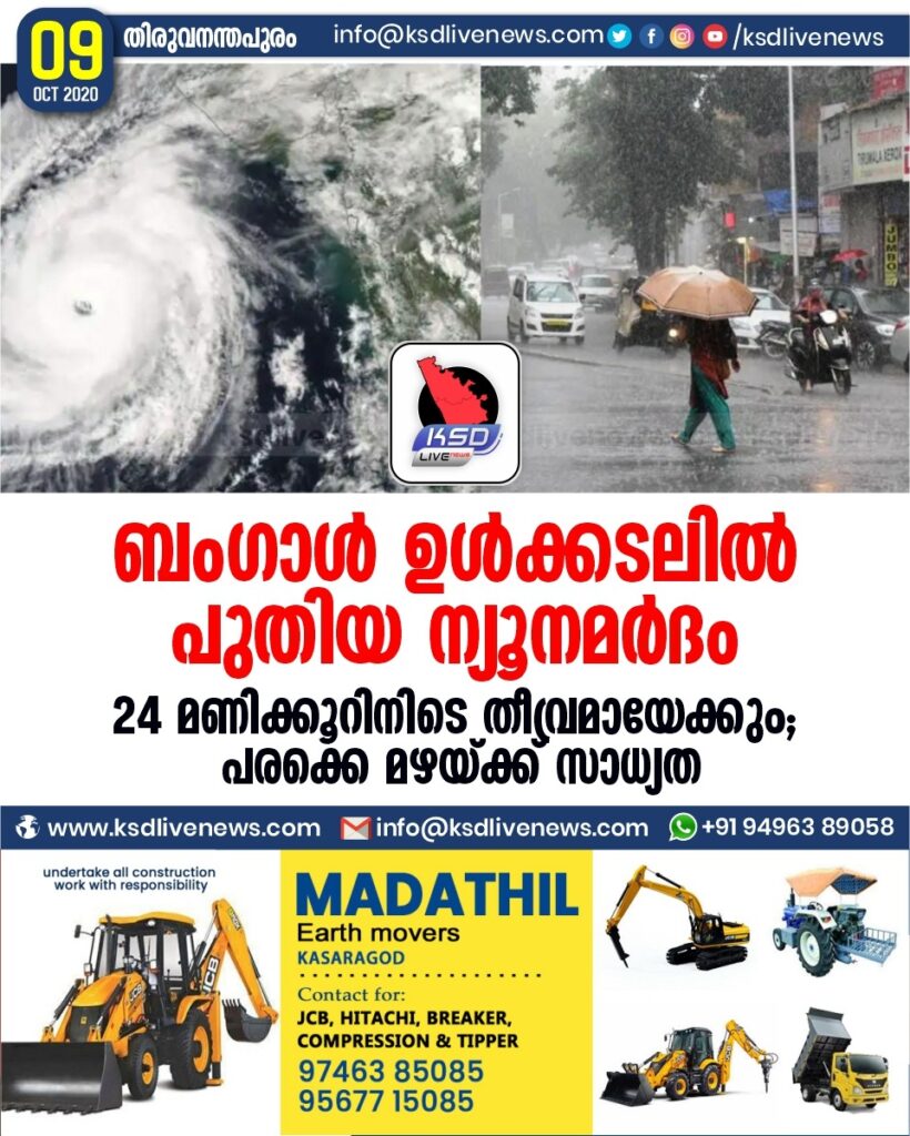 ബംഗാൾ ഉൾക്കടലിൽ പുതിയ ന്യൂനമർദം ; 24 മണിക്കൂറിനിടെ തീവ്രമായേക്കും ; പരക്കെ മഴയ്ക്ക് സാധ്യത