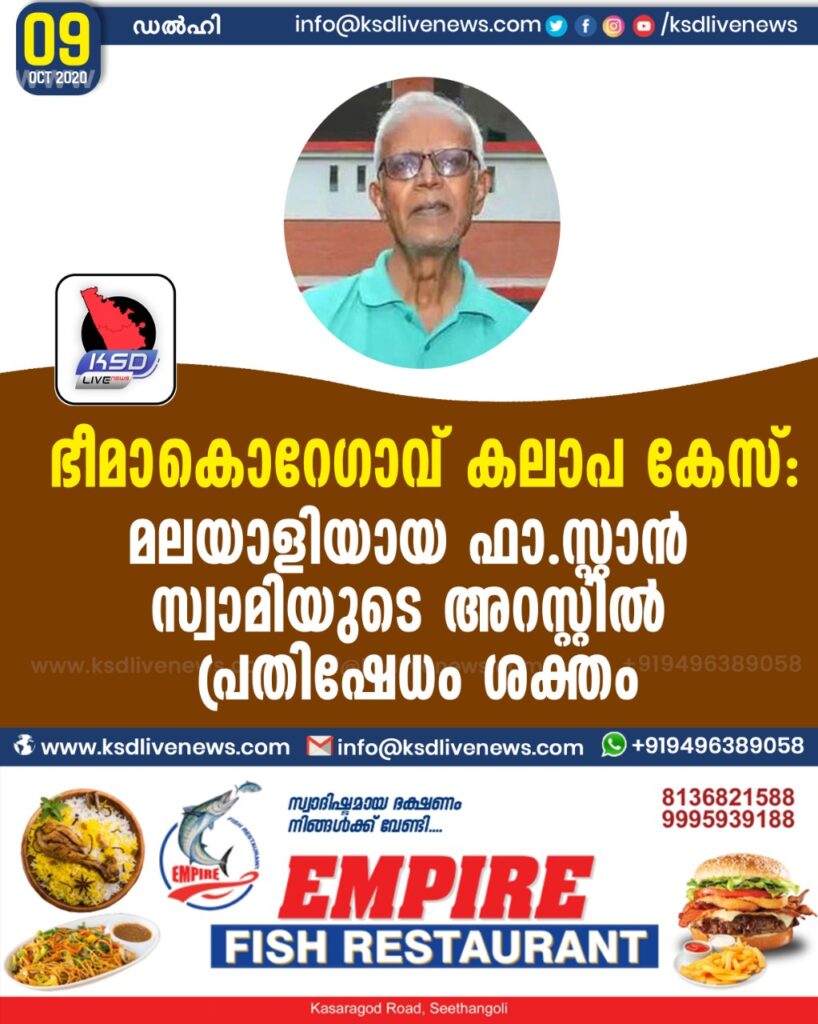 ഭീമാ–കൊറേഗാവ് കലാപ കേസ് : മലയാളിയായ ഫാ.സ്റ്റാൻ സ്വാമിയുടെ അറസ്റ്റിൽ പ്രതിഷേധം ശക്തം