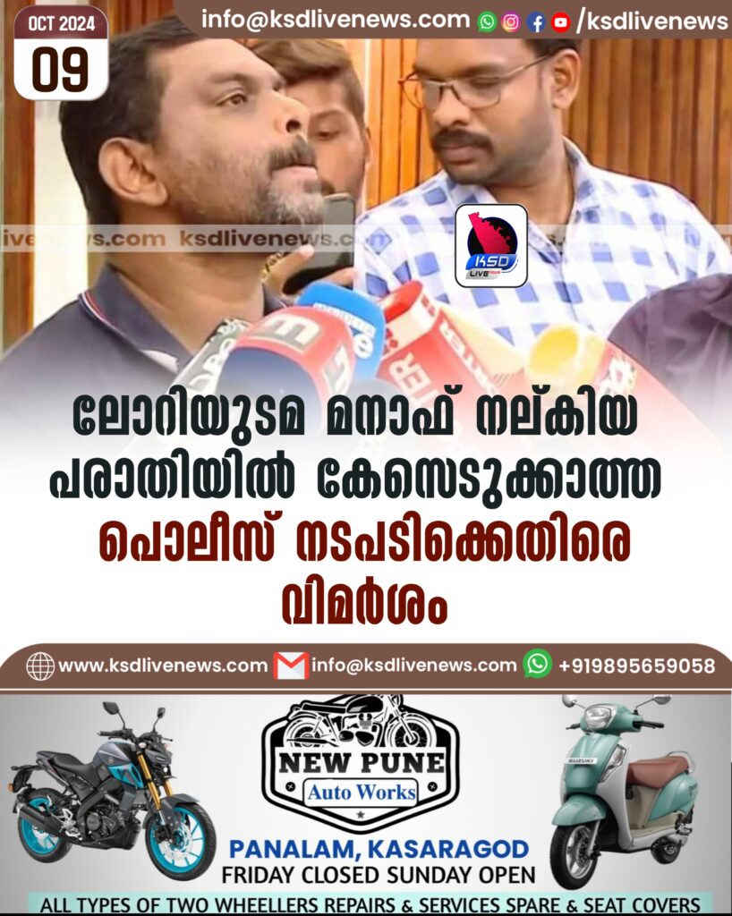 ലോറിയുടമ മനാഫ് നല്കിയ പരാതിയില് കേസെടുക്കാത്ത പൊലീസ് നടപടിക്കെതിരെ വിമർശം