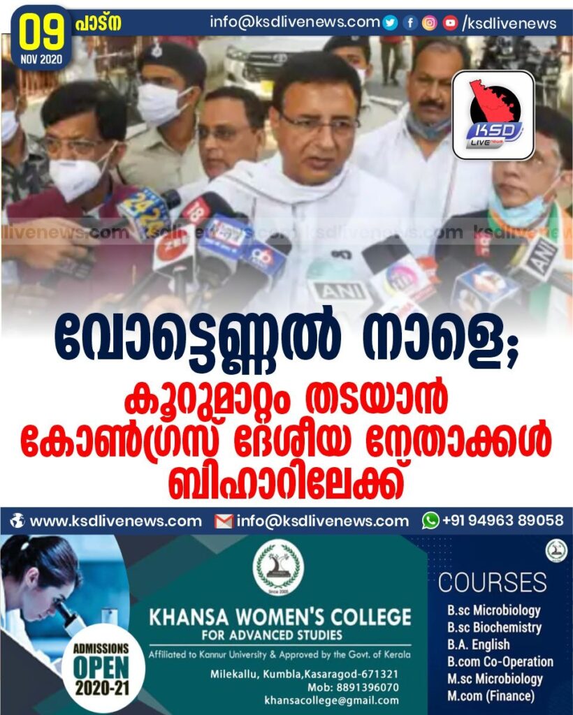 വോട്ടെണ്ണല് നാളെ ; കൂറുമാറ്റം തടയാന് കോണ്ഗ്രസ് ദേശീയ നേതാക്കള് ബിഹാറിലേക്ക്