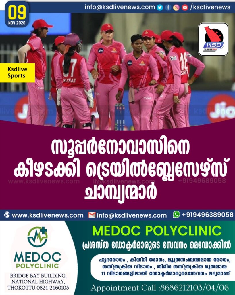 നിലവിലെ ചാമ്പ്യന്മാരായ സൂപ്പര്‍നോവാസിനെതിരെ 16 റണ്‍സ് വിജയം നേടി ട്രെയില്‍ബ്ലേസേഴ്സിന് കിരീടം. 118 റണ്‍സിന് ട്രെയില്‍ബ്ലേസേഴ്സിനെ എറിഞ്ഞ് പിടിക്കുവാന്‍ രാധ യാദവിന്റെ പ്രകടനത്തിലൂടെ സൂപ്പര്‍നോവാസിന് സാധിച്ചുവെങ്കിലും മറുപടി ബാറ്റിംഗിനിറങ്ങിയ ടീമിന് 7 വിക്കറ്റ് നഷ്ടത്തില്‍ 102 റണ്‍സ് മാത്രമേ നേടാനായുള്ളു.