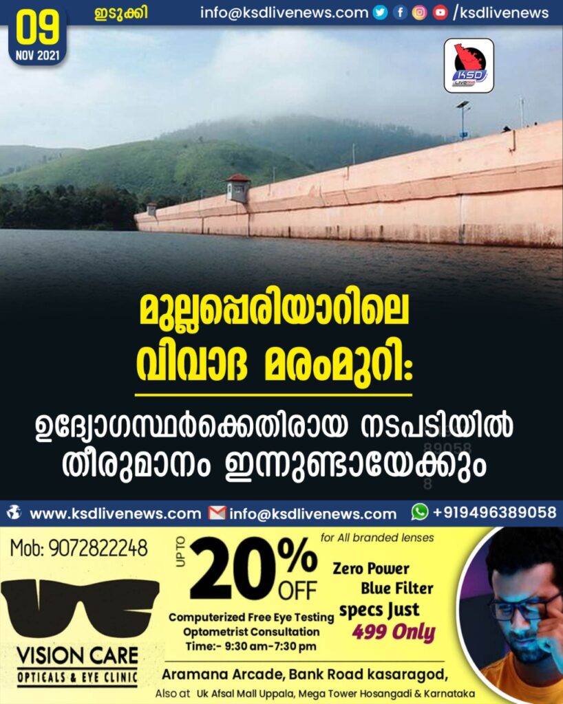 മുല്ലപ്പെരിയാറിലെ വിവാദ മരംമുറി: ഉദ്യോഗസ്ഥർക്കെതിരായ നടപടിയിൽ തീരുമാനം ഇന്നുണ്ടായേക്കും
