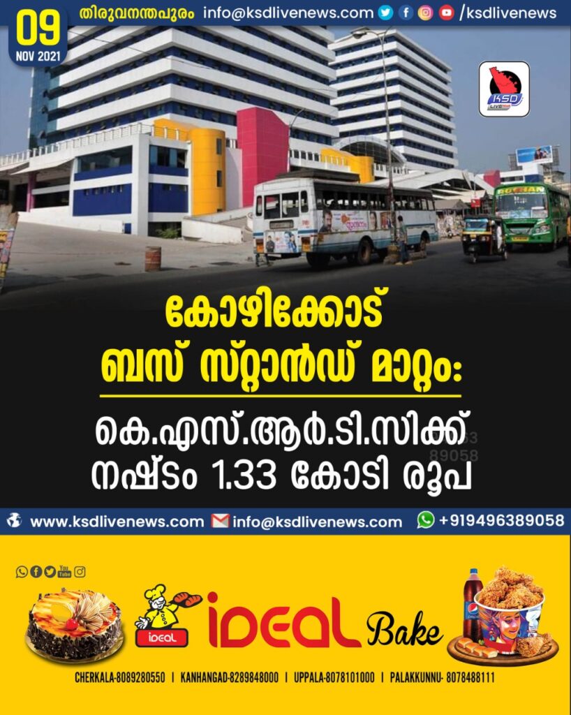 കോഴിക്കോട് ബസ് സ്റ്റാന്ഡ് മാറ്റം: കെ.എസ്.ആര്.ടി.സിക്ക് നഷ്ടം 1.33 കോടി രൂപ