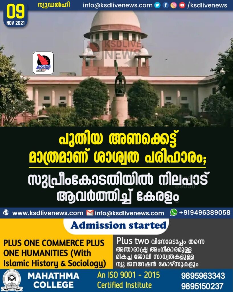 പുതിയ അണക്കെട്ട് മാത്രമാണ് ശാശ്വത പരിഹാരം’; സുപ്രീംകോടതിയില്‍ നിലപാട് ആവര്‍ത്തിച്ച് കേരളം