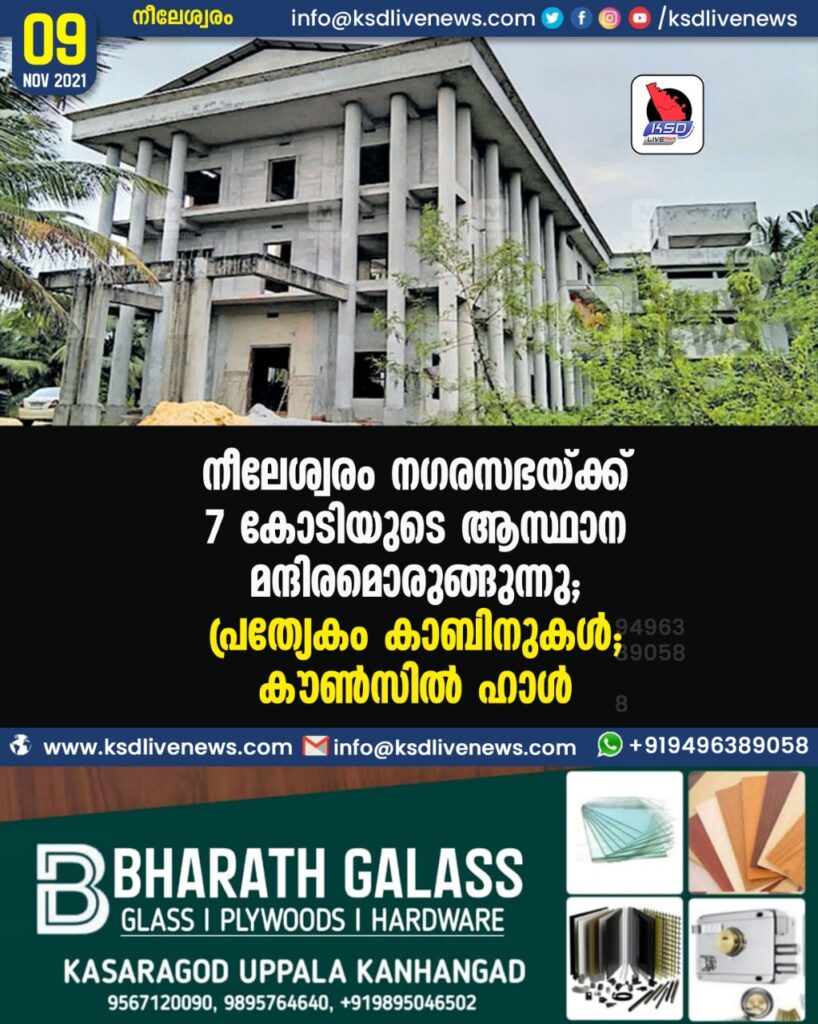 നീലേശ്വരം നഗരസഭയ്ക്ക് 7 കോടിയുടെ ആസ്ഥാന മന്ദിരമൊരുങ്ങുന്നു; പ്രത്യേകം കാബിനുകൾ, കൗൺസിൽ ഹാൾ