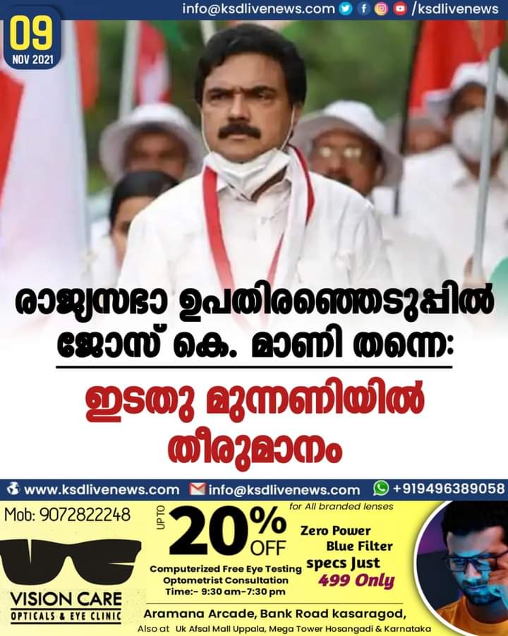 രാജ്യസഭാ ഉപതിരഞ്ഞെടുപ്പില് ജോസ് കെ. മാണി തന്നെ: ഇടതുമുന്നണിയില് തീരുമാനം
