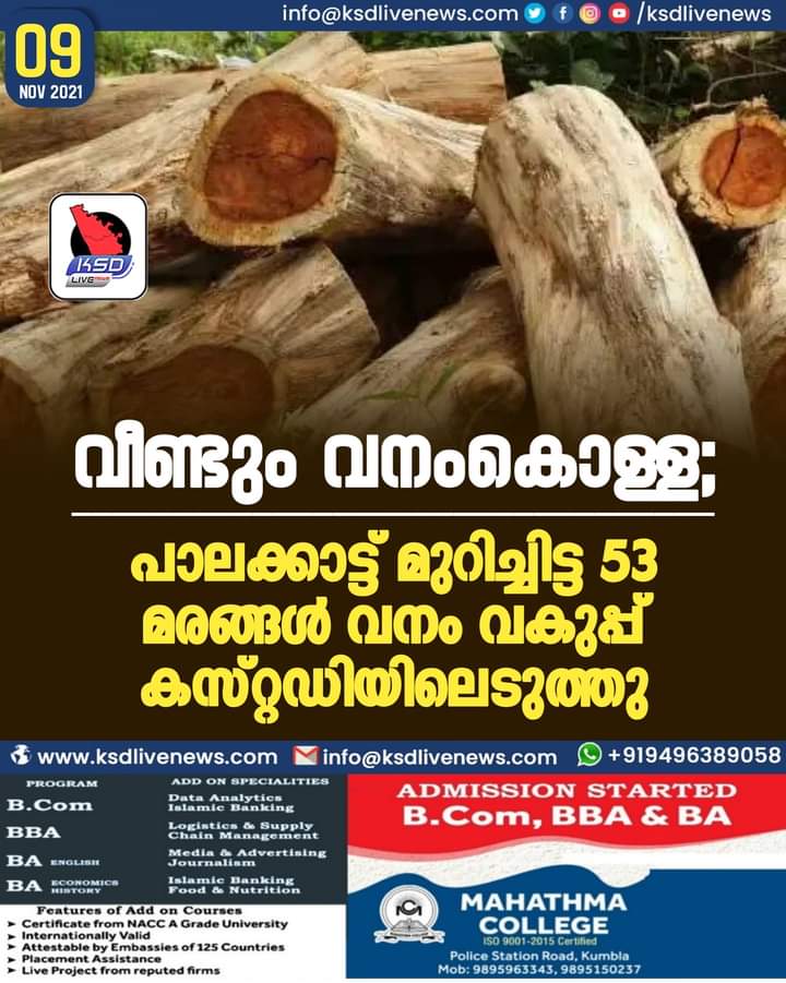 വീണ്ടും വനംകൊള്ള; പാലക്കാട്ട് മുറിച്ചിട്ട 53 മരങ്ങള് വനം വകുപ്പ് കസ്റ്റഡിയിലെടുത്തു