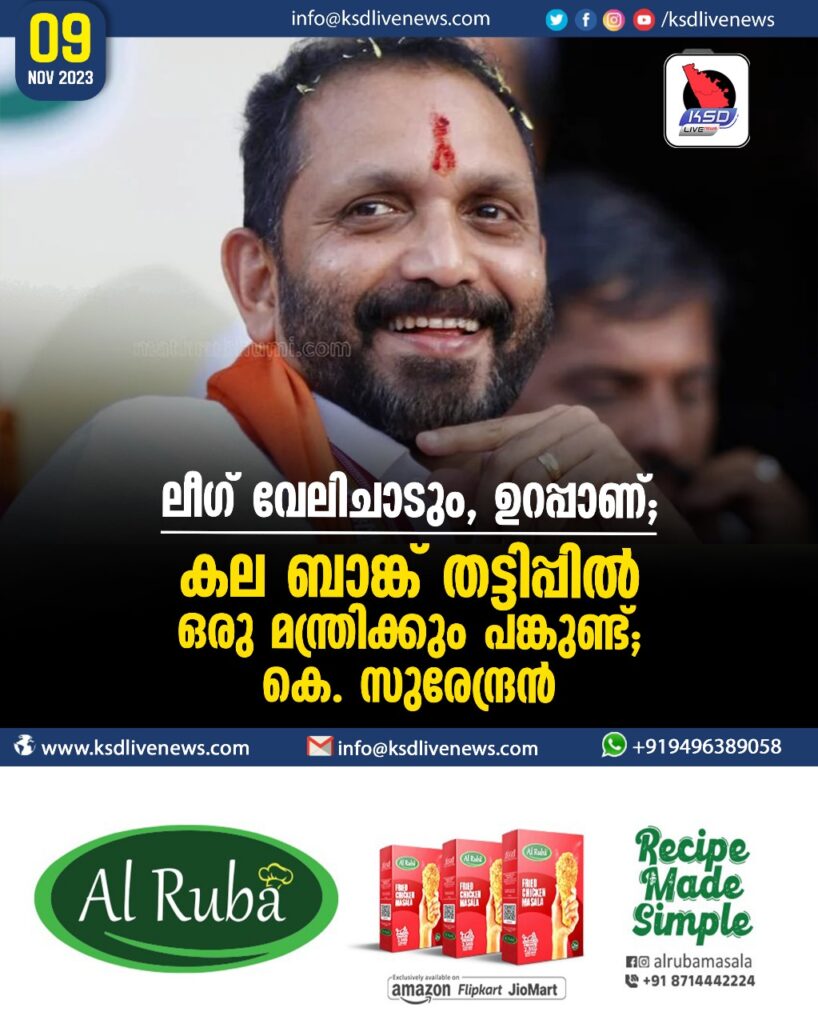 ലീഗ് വേലിചാടും, ഉറപ്പാണ്; കണ്ടല ബാങ്ക് തട്ടിപ്പില് ഒരു മന്ത്രിക്കും പങ്കുണ്ട് – കെ. സുരേന്ദ്രന്