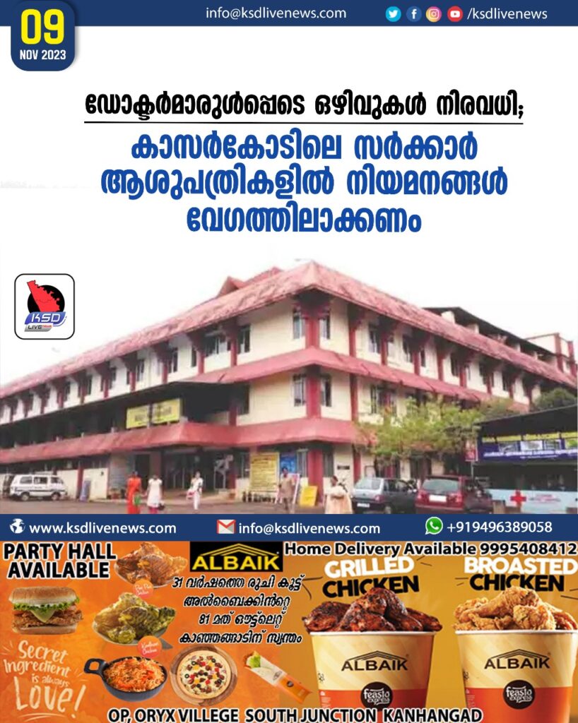 ഡോക്ടർമാരുൾപ്പെടെ ഒഴിവുകൾ നിരവധി; കാസർകോടിലെ സർക്കാർ ആശുപത്രികളിൽ നിയമനങ്ങൾ വേഗത്തിലാക്കണം