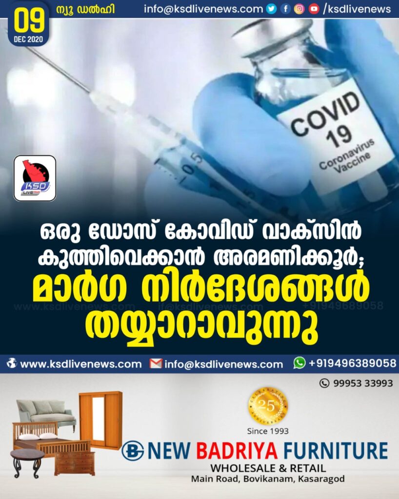 ഒരു ഡോസ് കോവിഡ് വാക്സിൻ കുത്തിവെക്കാൻ അരമണിക്കൂർ ; മാർഗ നിർദേശങ്ങൾ തയ്യാറാവുന്നു