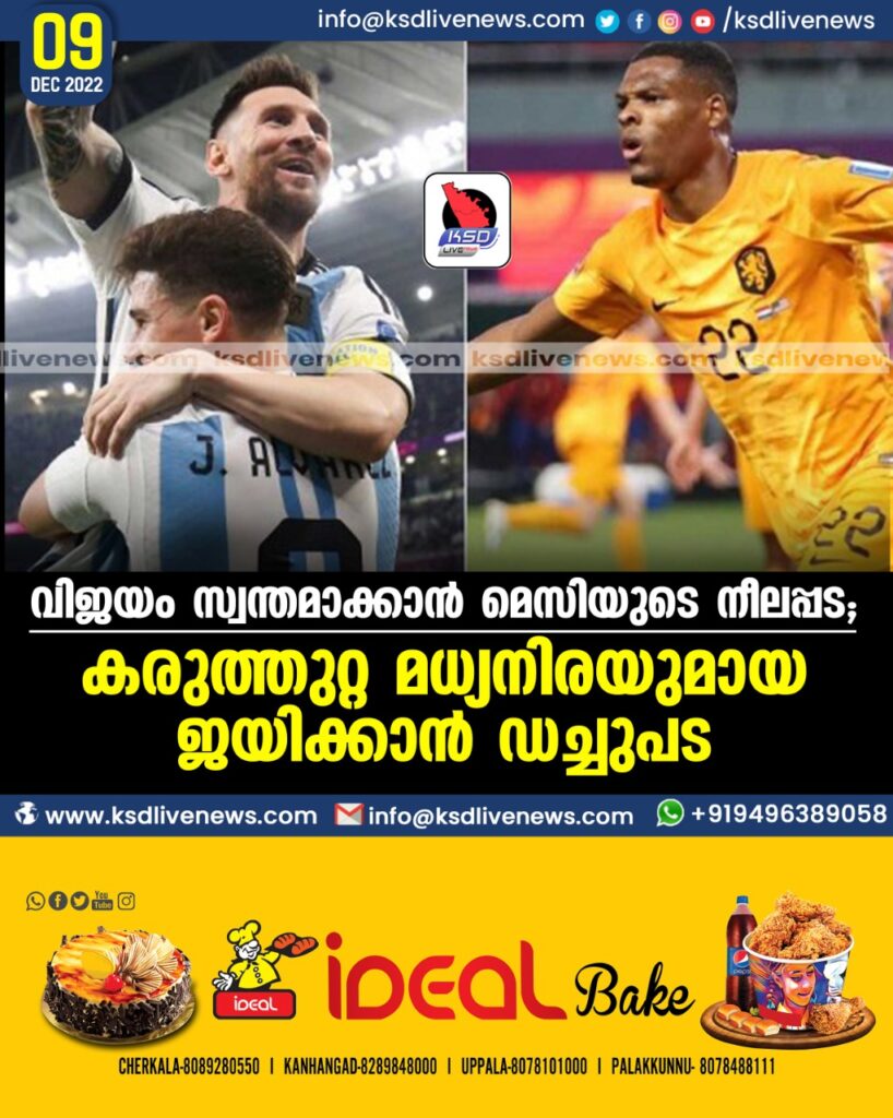 പിന്നാലെ ഡിപോളും ഡിമരിയയും മെസിയുമുള്പ്പെടെ മുഴുവന് താരങ്ങളും ദോഹയില് പരിശീലനത്തിനിറങ്ങിയിരുന്നു. വലിയ മാറ്റങ്ങളില്ലാതെയായിരിക്കും രണ്ട് ടീമുകളും ക്വാര്ട്ടറിനിറങ്ങുകയെന്നാണ് സൂചനകള്. കരുത്തുറ്റ മധ്യനിരയും പ്രതിരോധ നിരയുമാണ് ഡച്ച് പടയുടെ കരുത്തെങ്കില്, ലയണല് മെസിയും ഡി മരിയയും അണിനിരക്കുന്ന മുന്നേറ്റ നിരയിലാണ് അര്ജന്റീനയുടെപ്രതീക്ഷകള്.