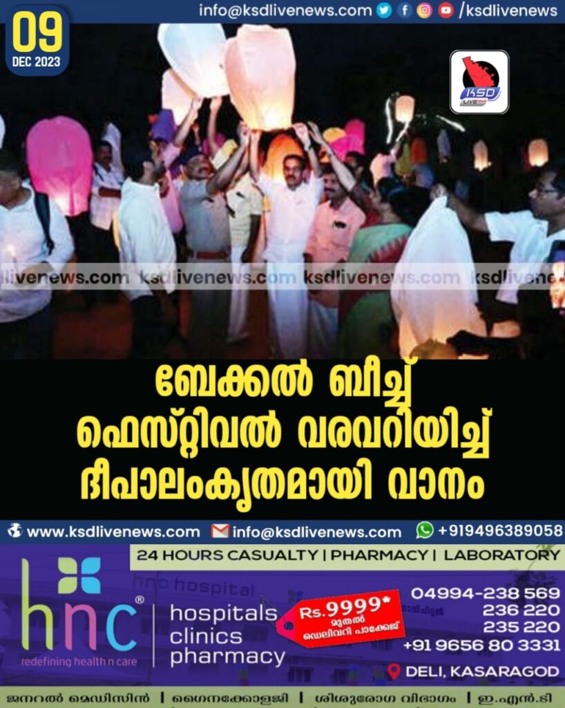 ബേക്കൽ ബീച്ച് ഫെസ്റ്റിവൽ വരവറിയിച്ച് ദീപാലംകൃതമായി വാനം