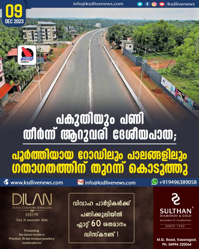 ചെങ്കള -നീലേശ്വരം റീച്ചിൽ 15.72 കി.മീ പ്രധാന പാത റെഡിയായി