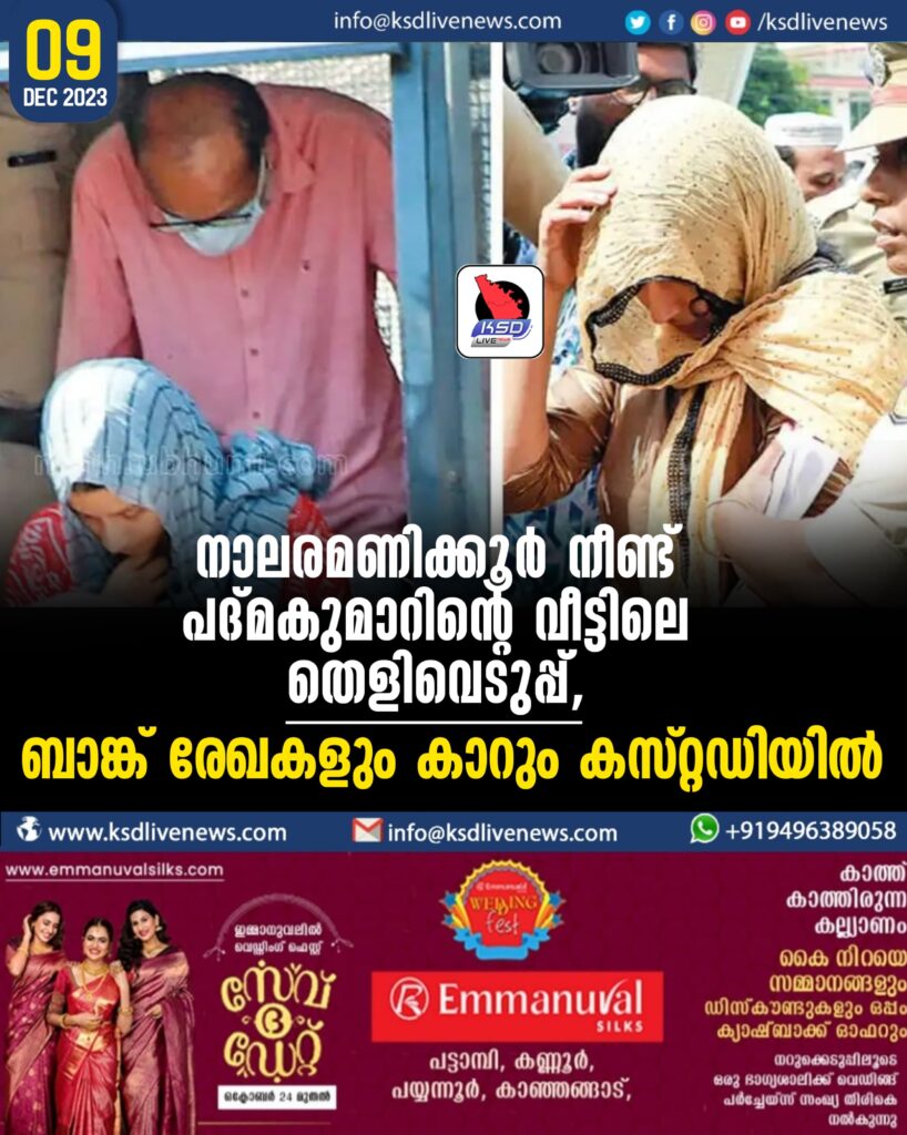 നാലരമണിക്കൂര് നീണ്ട് പദ്മകുമാറിന്റെ വീട്ടിലെ തെളിവെടുപ്പ്, ബാങ്ക് രേഖകളും കാറും കസ്റ്റഡിയില്