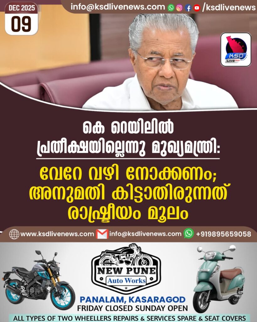 കെ റെയിലിൽ പ്രതീക്ഷയില്ലെന്നു മുഖ്യമന്ത്രി: വേറേ വഴി നോക്കണം; അനുമതി കിട്ടാതിരുന്നത് രാഷ്ട്രീയം മൂലം