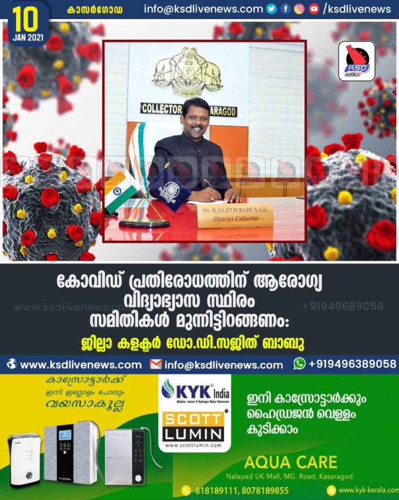 കോവിഡ് പ്രതിരോധത്തിന് ആരോഗ്യ വിദ്യാഭ്യാസ സ്ഥിരം സമിതികള് മുന്നിട്ടിറങ്ങണം: ജില്ലാ കളക്ടര് ഡോ.ഡി.സജിത് ബാബു