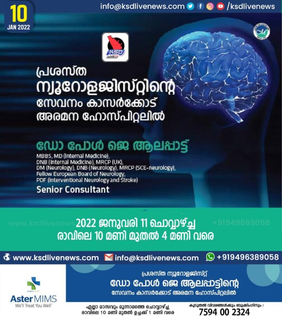 കാസർകോഡ് അരമന ഹോസ്പിറ്റലിൽ കോഴിക്കോട് ആസ്റ്റർ മിംസ് ആശുപത്രിയിലെ പ്രശസ്ത *ന്യൂറോളജിസ്റ്റ് & സ്ട്രോക്ക് വിദക്ത ഡോക്ടർ പോൾ ജെ ആലപ്പാട്ട് സേവനം 11/01/2022 – ചൊവ്വാഴ്ച രാവിലെ 10:00 മുതൽ 04:00 മണി വരെ ഉണ്ടായിരിക്കുന്നതാണ്.