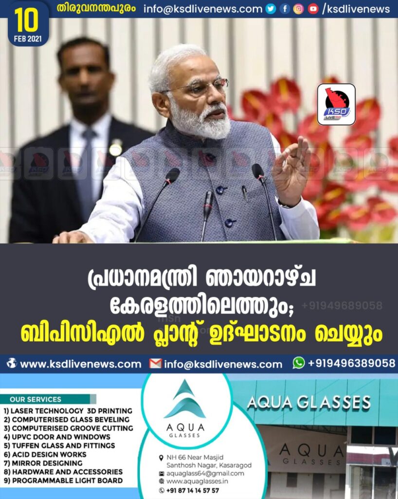 പ്രധാനമന്ത്രി ഞായറാഴ്ച കേരളത്തിലെത്തും; ബിപിസിഎല് പ്ലാന്റ് ഉദ്ഘാടനം ചെയ്യും