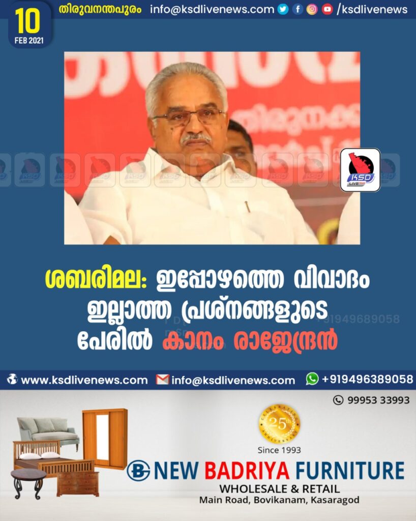 ഇല്ലാത്ത പ്രശ്നങ്ങളുടെ പേരിലാണ് ഇപ്പോൾ ശബരിമലയിൽ വിവാദങ്ങൾ ഉണ്ടാക്കാൻ ശ്രമിക്കുന്നത്. 2019-ലെ ലോക്സഭ തിരഞ്ഞെടുപ്പിൽ ഇടതുപക്ഷത്തിനുണ്ടായ വലിയ പരാജയത്തിനു കാരണം ശബരിമല വിഷയം കൊണ്ടല്ലെന്നും കാനം കൂട്ടിച്ചേർത്തു.
