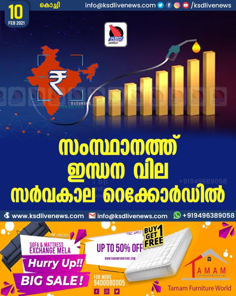 സംസ്ഥാനത്ത് ഇന്ധന വില സർവകാല റെക്കോർഡിൽ