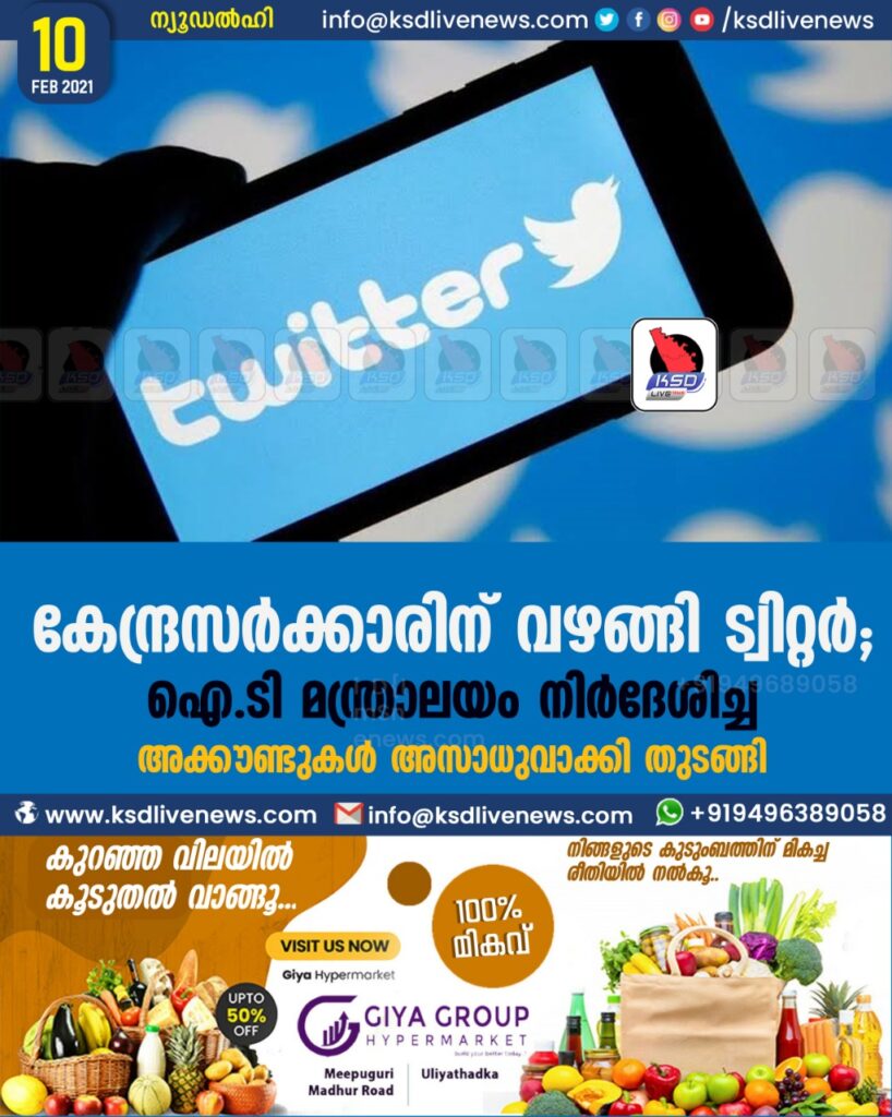 കേന്ദ്രസർക്കാരിന് വഴങ്ങി ട്വിറ്റർ ; ഐ.ടി മന്ത്രാലയം നിർദേശിച്ച അക്കൗണ്ടുകൾ അസാധുവാക്കി തുടങ്ങി