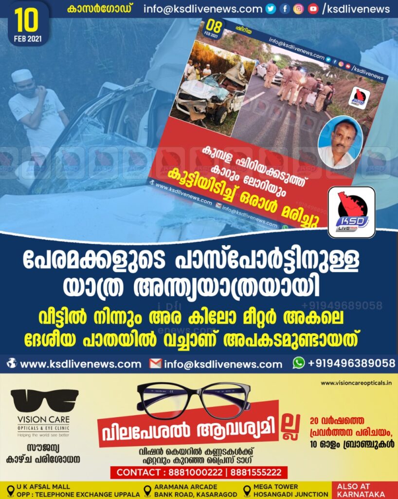 പേരമക്കളുടെ പാസ്പോർട്ടിനുള്ള യാത്ര അന്ത്യയാത്രയായി … വീട്ടിൽ നിന്നും അര കിലോ മീറ്റർ അകലെ ദേശീയ പാതയിൽ വച്ചാണ് അപകടമുണ്ടായത്