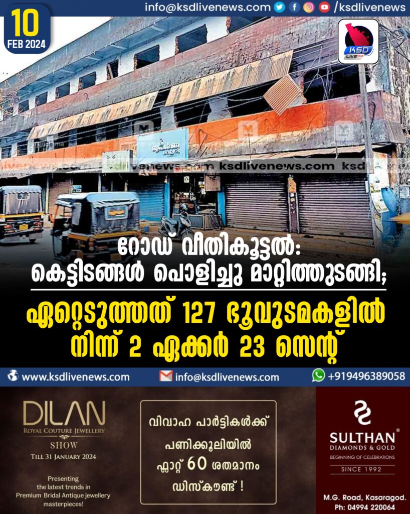 റോഡ് വീതികൂട്ടൽ: കെട്ടിടങ്ങൾ പൊളിച്ചു മാറ്റിത്തുടങ്ങി; ഏറ്റെടുത്തത് 127 ഭൂവുടമകളിൽനിന്ന് 2 ഏക്കർ 23 സെന്റ്