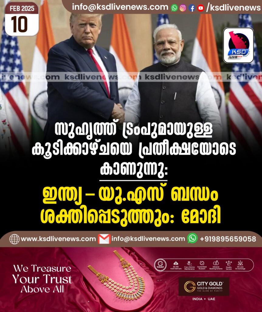 സുഹൃത്ത് ട്രംപുമായുള്ള കൂടിക്കാഴ്ചയെ പ്രതീക്ഷയോടെ കാണുന്നു, ഇന്ത്യ-യു.എസ് ബന്ധം ശക്തിപ്പെടുത്തും: മോദി