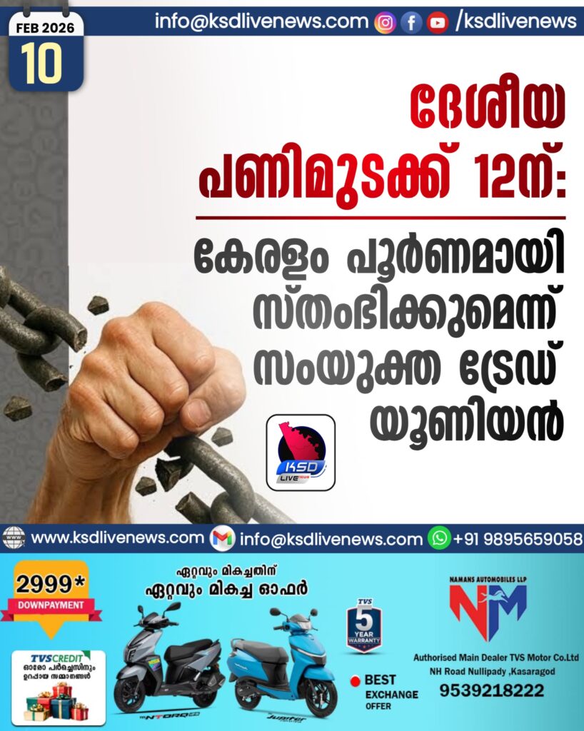 ദേശീയ പണിമുടക്ക് 12ന്; കേരളം പൂര്‍ണമായി സ്തംഭിക്കുമെന്ന് സംയുക്ത ട്രേഡ് യൂണിയന്‍