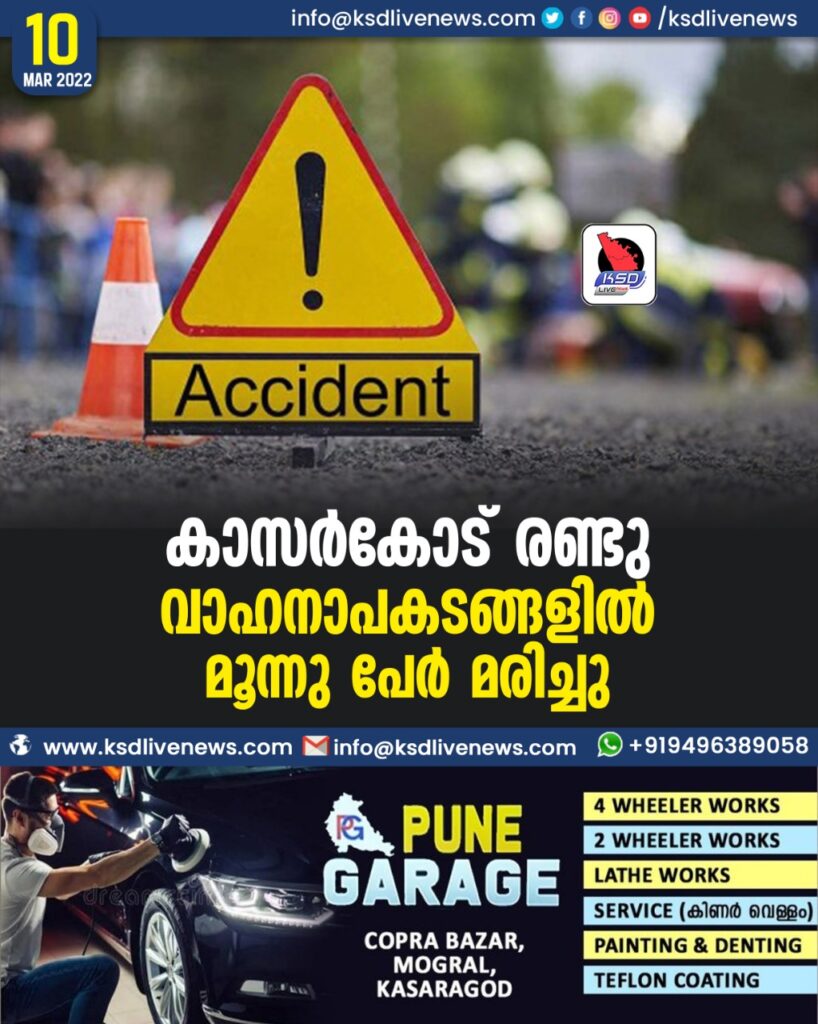 കാസര്കോട് രണ്ടു വാഹനാപകടങ്ങളില് മൂന്നു പേര് മരിച്ചു
