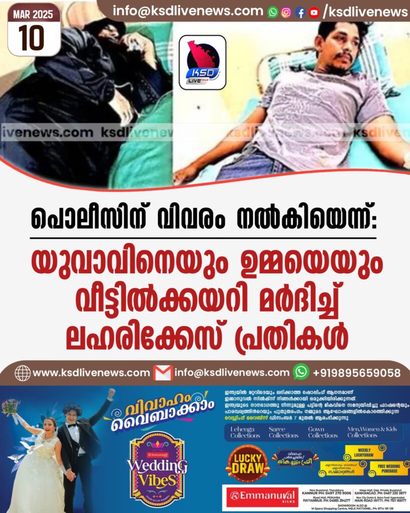 പൊലീസിന് വിവരം നൽകിയെന്ന്: യുവാവിനെയും ഉമ്മയെയും വീട്ടിൽക്കയറി മർദിച്ച് ലഹരിക്കേസ് പ്രതികൾ