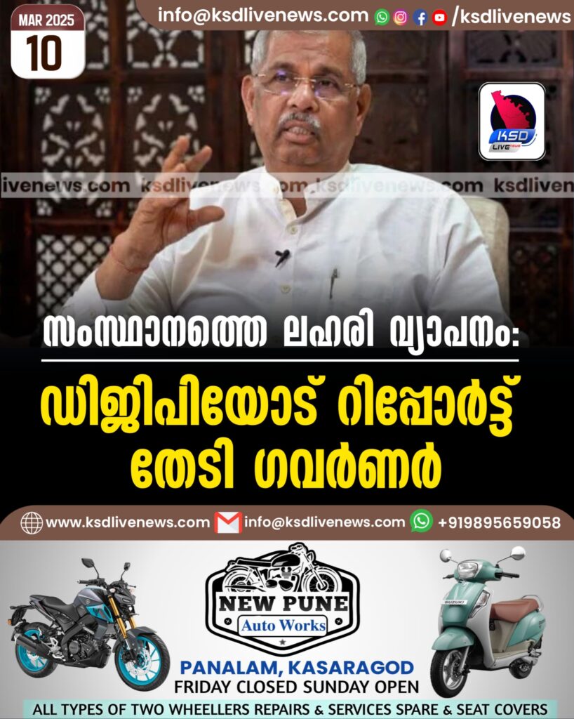 സംസ്ഥാനത്തെ ലഹരി വ്യാപനം: ഡിജിപിയോട് റിപ്പോര്ട്ട് തേടി ഗവര്ണര്