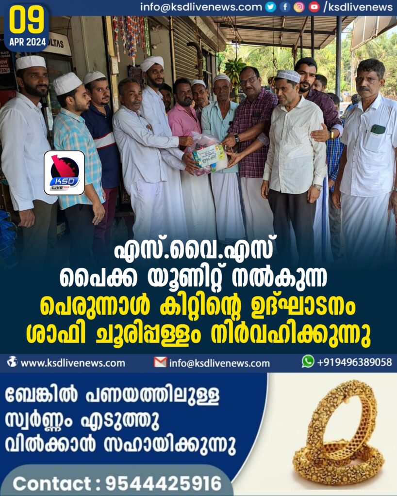 എസ്.വൈ.എസ് പൈക്ക യൂണിറ്റ് നൽകുന്ന പെരുന്നാൾ കിറ്റിൻറെ ഉദ്ഘാടനം ശാഫി ചൂരിപ്പള്ളം നിർവഹിക്കുന്നു