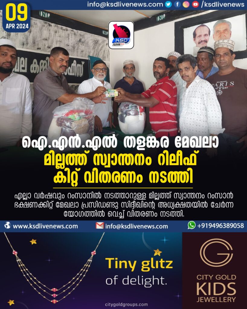 INL തളങ്കര മേഖലാ മില്ലത്ത് സ്വാന്തനം റിലീഫ് കിറ്റ് വിതരണം നടത്തി
