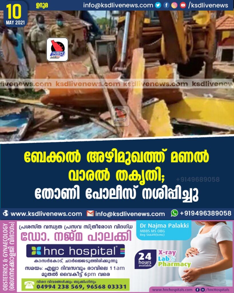 ബേക്കല് അഴിമുഖത്ത് മണല് വാരല് തകൃതി; തോണി പൊലീസ് നശിപ്പിച്ചു