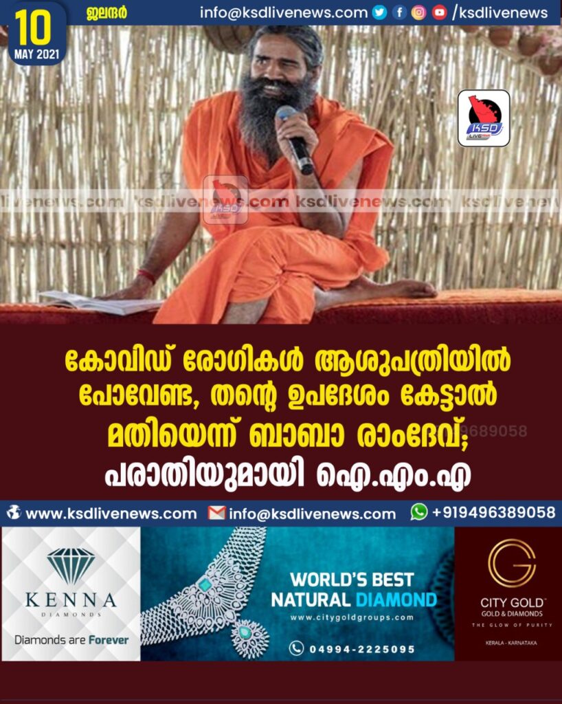 കോവിഡ്​ രോഗികള്‍ ആശുപത്രിയില്‍ പോവേണ്ട, തന്‍റെ ഉപദേശം കേട്ടാല്‍ മതിയെന്ന് ബാബാ രാംദേവ്​; പരാതിയുമായി ഐ.എം.എ​