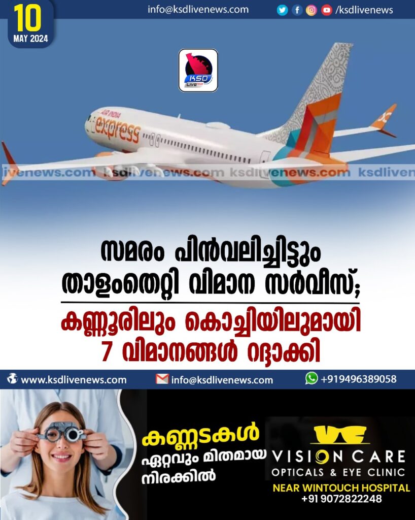 സമരം പിൻവലിച്ചിട്ടും താളംതെറ്റി വിമാന സർവീസ്; കണ്ണൂരിലും കൊച്ചിയിലുമായി 7 വിമാനങ്ങൾ റദ്ദാക്കി