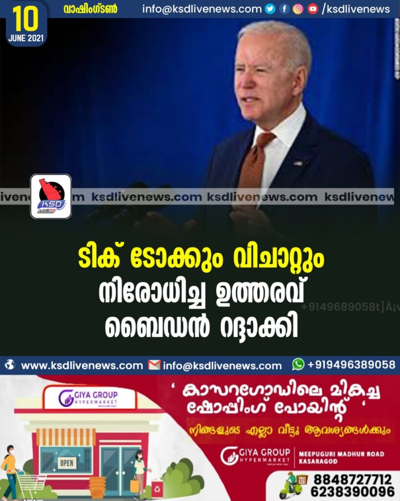 ടിക് ടോക്കും വിചാറ്റും നിരോധിച്ച ഉത്തരവ് ബൈഡന്‍ റദ്ദാക്കി
