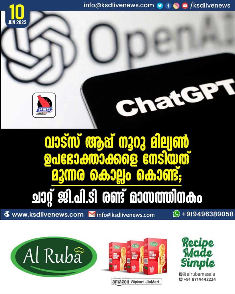 വാട്‌സ് ആപ്പ് നൂറു മില്യണ്‍ ഉപഭോക്താക്കളെ നേടിയത് മൂന്നര കൊല്ലം കൊണ്ട്; ചാറ്റ് ജി.പി.ടി രണ്ട് മാസത്തിനകം