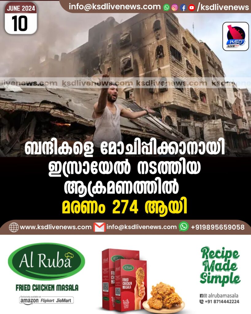 ബന്ദികളെ മോചിപ്പിക്കാനായി ഇസ്രായേല് നടത്തിയ ആക്രമണത്തില് മരണം 274 ആയി
