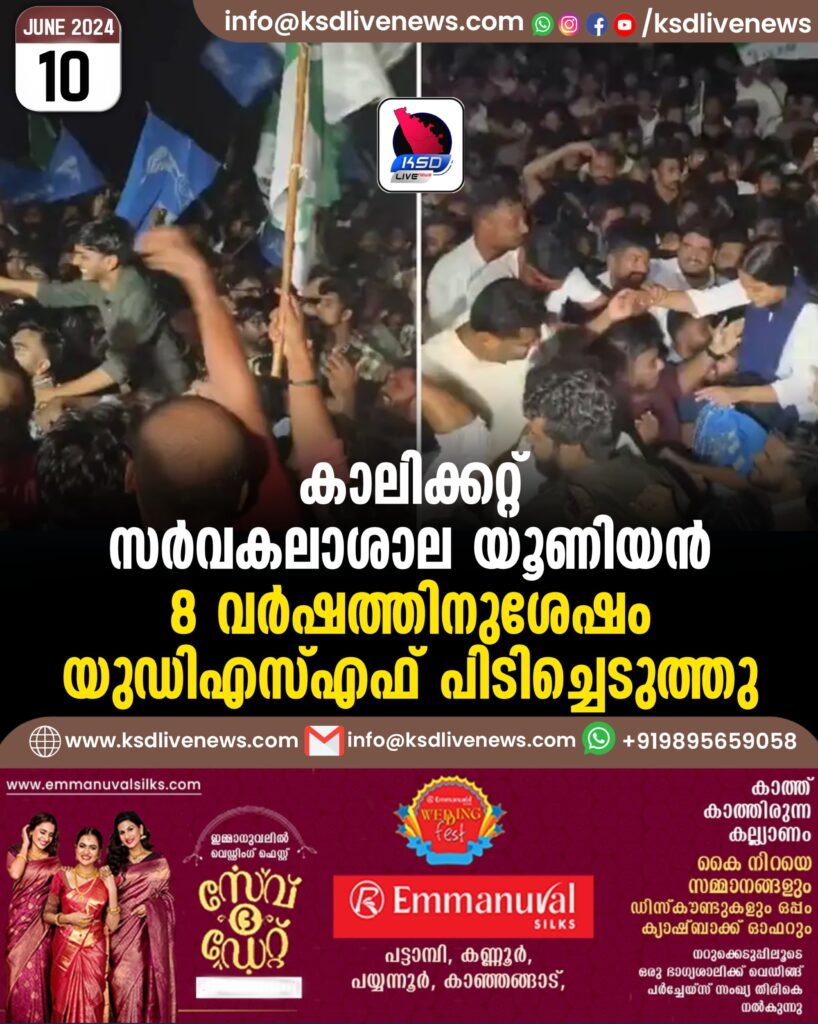 കാലിക്കറ്റ് സര്വകലാശാല യൂണിയന് 8 വര്ഷത്തിനുശേഷം യുഡിഎസ്എഫ് പിടിച്ചെടുത്തു