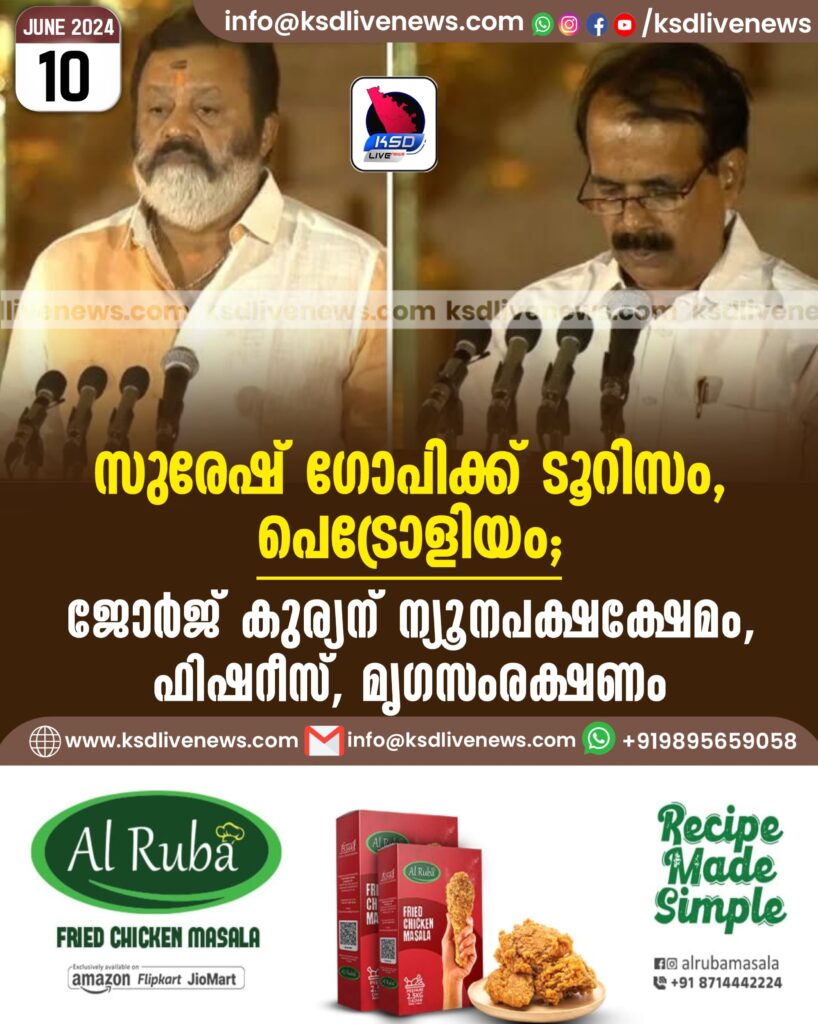 സുരേഷ് ഗോപിക്ക് ടൂറിസം, പെട്രോളിയം; ജോർജ് കുര്യന് ന്യൂനപക്ഷക്ഷേമം, ഫിഷറീസ്, മൃഗസംരക്ഷണം