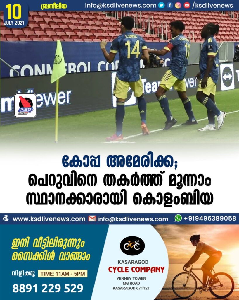 കോപ്പ അമേരിക്ക; പെറുവിനെ തകര്ത്ത് മൂന്നാം സ്ഥാനക്കാരായി കൊളംബിയ