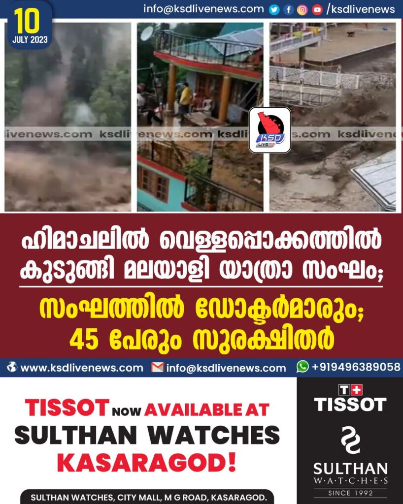 ഹിമാചലിൽ വെള്ളപ്പൊക്കത്തിൽ കുടുങ്ങി മലയാളി യാത്രാ സംഘം; സംഘത്തിൽ ഡോക്ടർമാരും, 45 പേരും സുരക്ഷിതർ