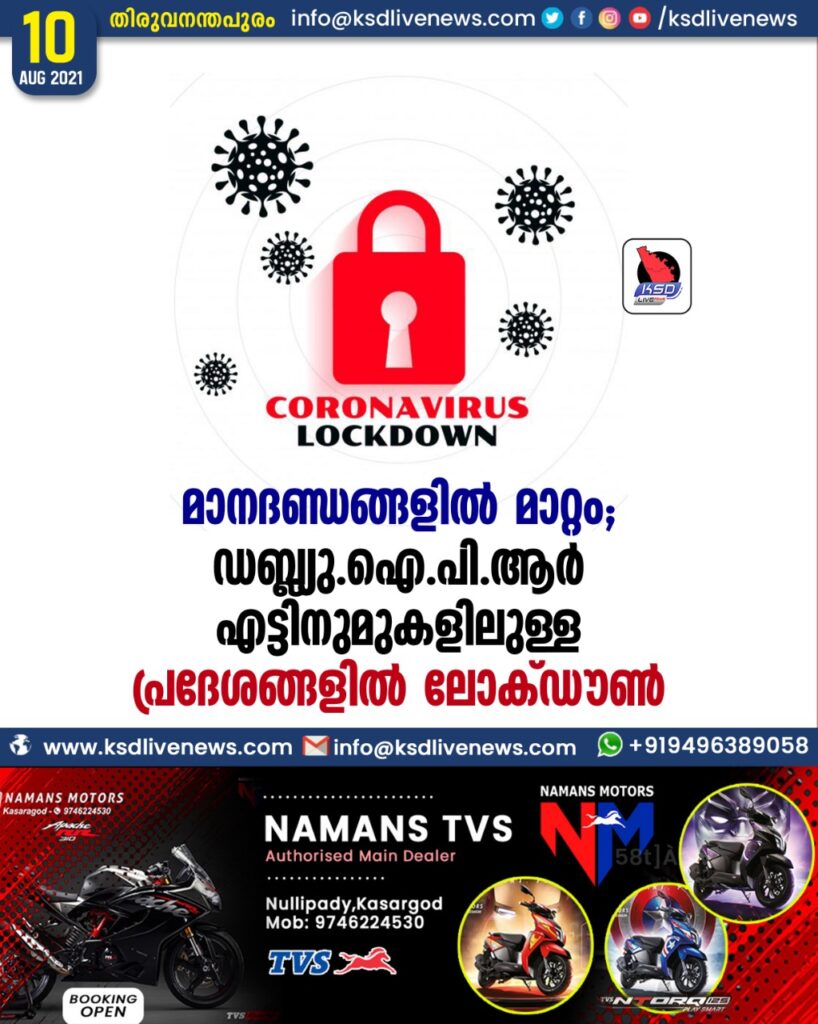 ഡബ്ല്യു.ഐ.പി.ആര് എട്ടിനു മുകളിലുള്ള പ്രദേശങ്ങളില് ലോക്ഡൗണ്