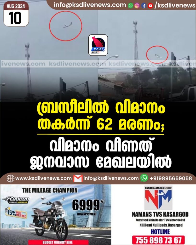 ബ്രസീലിൽ വിമാനം തകർന്ന് 62 മരണം; വിമാനം വീണത് ജനവാസ മേഖലയിൽ/VIDEO