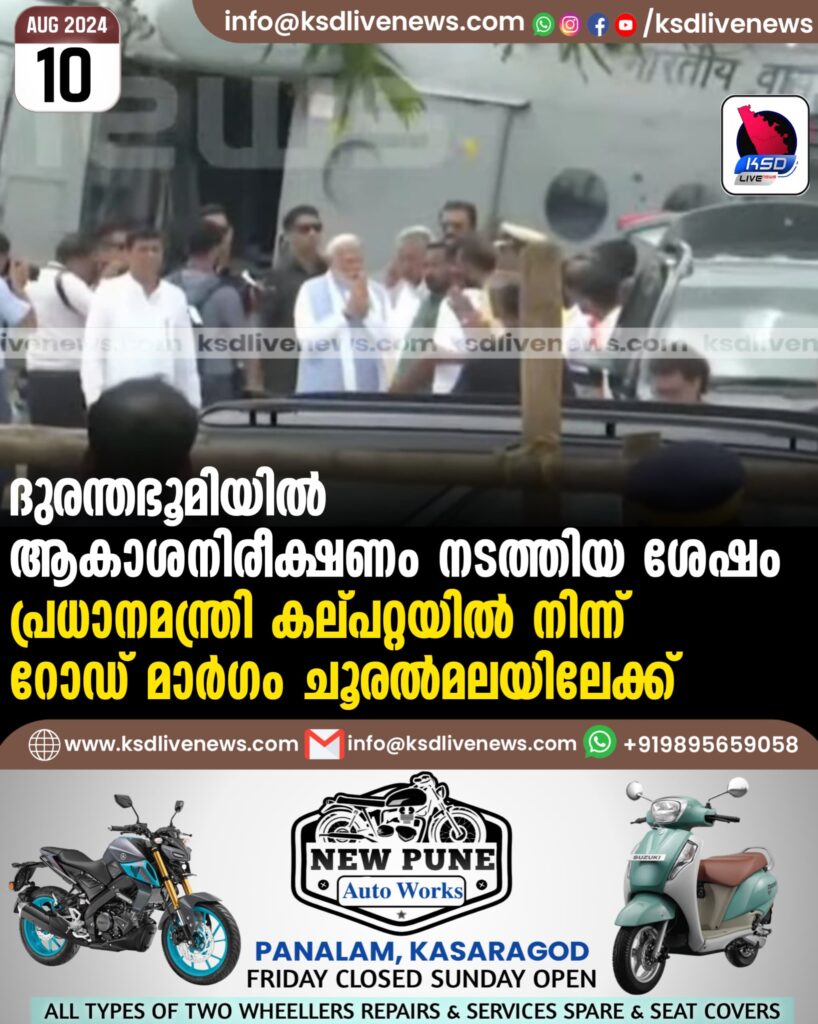 ദുരന്തഭൂമിയിൽ ആകാശനിരീക്ഷണം നടത്തിയ ശേഷം പ്രധാനമന്ത്രി കല്പറ്റയിൽനിന്ന് റോഡ് മാർഗം ചൂരൽമലയിലേക്ക്